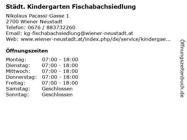 1 Städt. Kindergarten Schrattensteingasse (Entfernung: 0,65 km) Schrattensteingasse 28, 2700 Wiener Neustadt 2 6 |