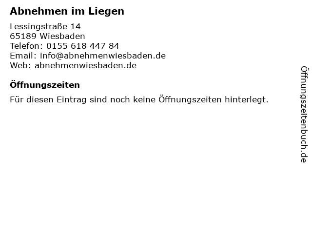 | Öffnungszeiten Abnehmen im Liegen in Wiesbaden anzeigen | |