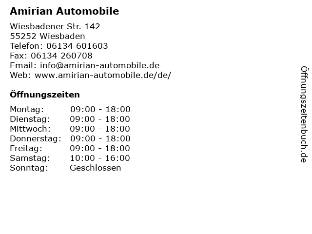 | Adresse Amirian Automobile in Wiesbaden anzeigen |