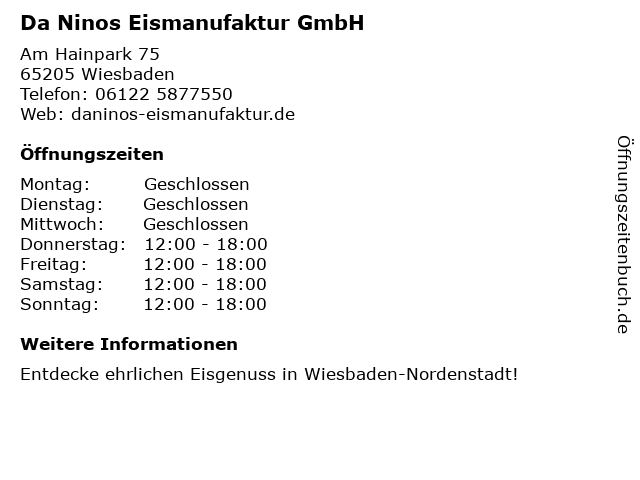 Öffnungszeiten Da Ninos Eismanufaktur GmbH