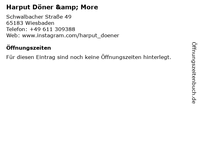 | Öffnungszeiten Harput Döner & More in Wiesbaden anzeigen | |