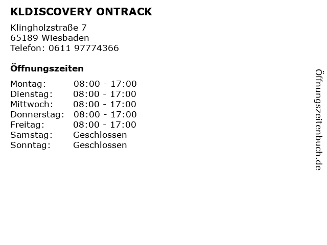 | Öffnungszeiten KLDISCOVERY ONTRACK in Wiesbaden anzeigen | |