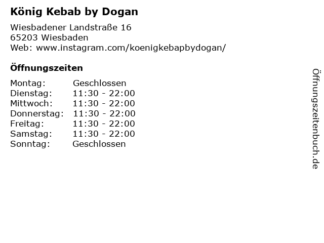 | Adresse König Kebab by Dogan in Wiesbaden anzeigen |