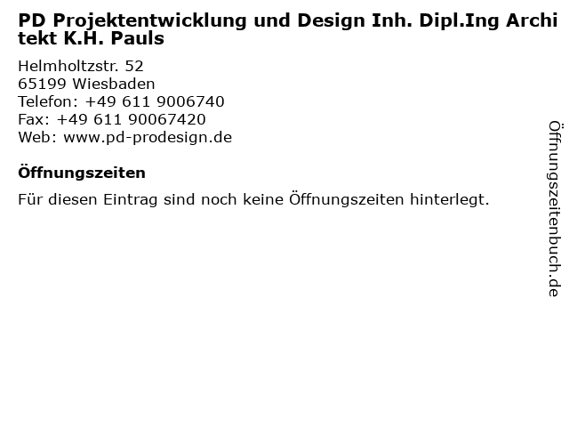| PD Projektentwicklung und Design Inh. Dipl.Ing Architekt K.H. Pauls anrufen | |