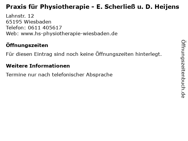| Praxis für Physiotherapie - E. Scherließ u. D. Heijens anrufen | |