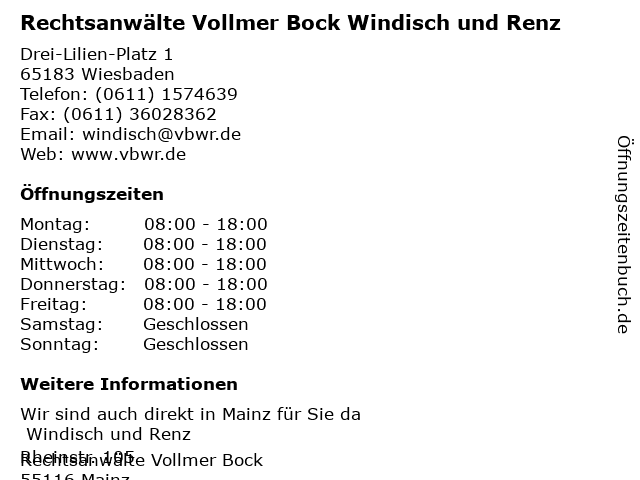 Branchen & Suchbegriffe zu Rechtsanwälte Vollmer Bock Windisch und Renz:bock, rechtsanwälte, renz, vollmer, windisch |