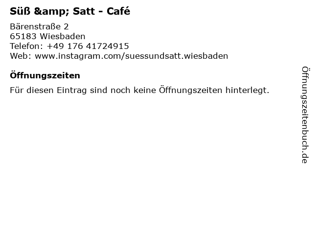| Öffnungszeiten Süß & Satt - Café in Wiesbaden anzeigen | |