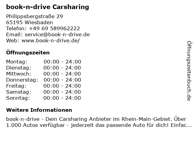 Öffnungszeiten book-n-drive Carsharing in Wiesbaden anzeigen