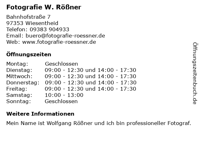 | Öffnungszeiten Fotografie W. Rößner in Wiesentheid anzeigen | |