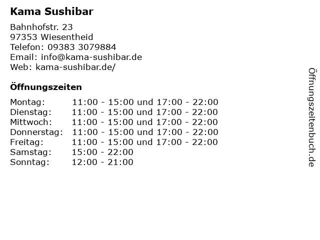 | Öffnungszeiten Kama Sushibar in Wiesentheid anzeigen | |