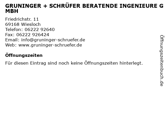 | GRUNINGER + SCHRÜFER BERATENDE INGENIEURE GMBH anrufen | |