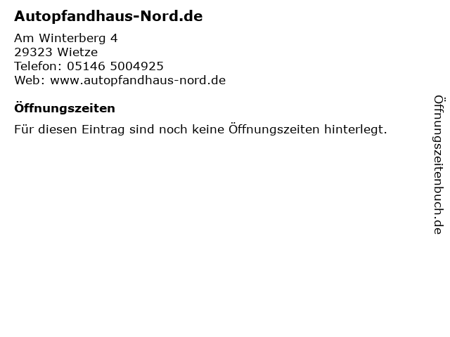 | Öffnungszeiten Autopfandhaus-Nord.de in Wietze anzeigen | |