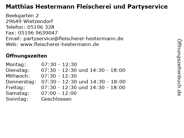 Branchen & Suchbegriffe zu Matthias Hestermann Fleischerei und Partyservice:fleischerei, hestermann, matthias, partyservice |
