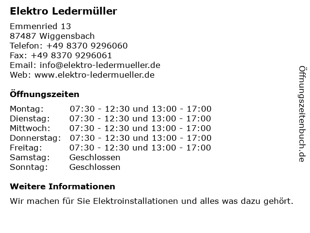 | Öffnungszeiten Elektro Ledermüller in Wiggensbach anzeigen | |