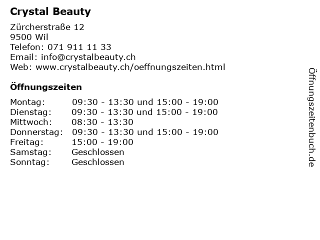 | Öffnungszeiten Crystal Beauty in Wil anzeigen | |