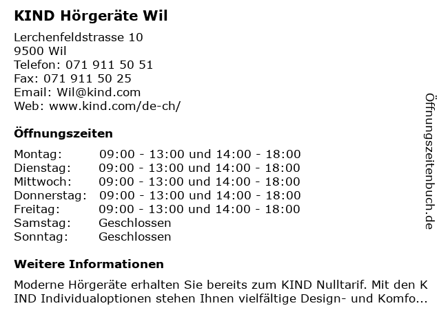 | Öffnungszeiten KIND Hörgeräte Wil in Wil anzeigen | |