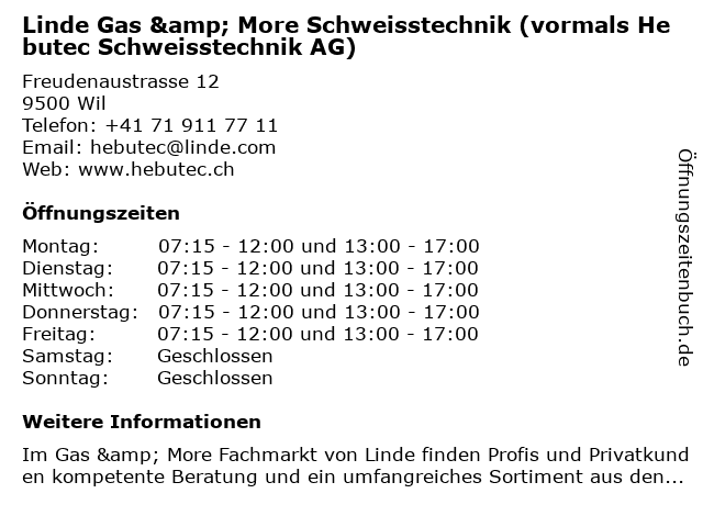 Branchen & Suchbegriffe zu Linde Gas & More Schweisstechnik (vormals Hebutec Schweisstechnik AG):gas, hebutec, linde, more, schweisstechnik, vormals |