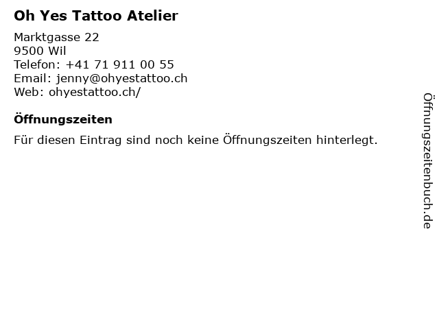 | Öffnungszeiten Oh Yes Tattoo Atelier in Wil anzeigen | |