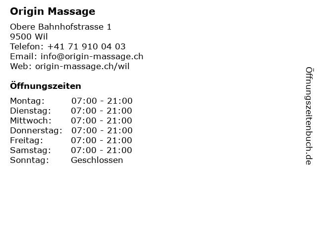 | Telefonnummer Origin Massage in Wil (+41 71 910 04 03) anrufen | |