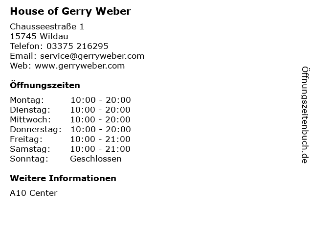 | Adresse House of Gerry Weber in Wildau anzeigen |