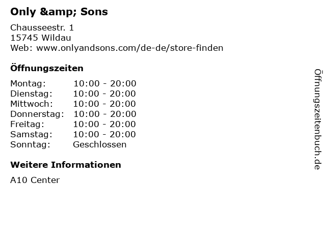 | Öffnungszeiten Only & Sons in Wildau anzeigen | |
