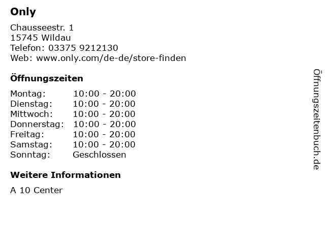 | Öffnungszeiten Only in Wildau anzeigen | |