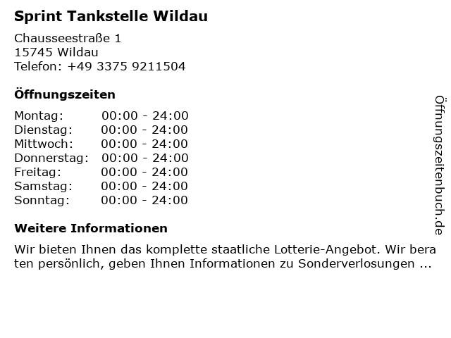 | Öffnungszeiten Sprint Tankstelle Wildau in Wildau anzeigen | |