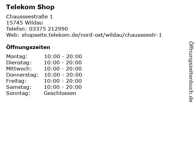 | Öffnungszeiten Telekom Shop in Wildau anzeigen | |