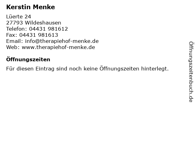 | Öffnungszeiten Kerstin Menke in Wildeshausen anzeigen | |