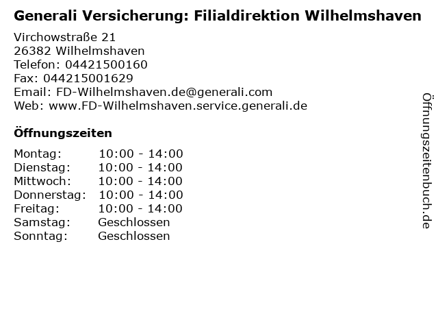 Branchen & Suchbegriffe zu Generali Versicherung: Filialdirektion Wilhelmshaven:filialdirektion, generali, generali versicherung: filialdirektion wilhelmshaven, versicherung:, wilhelmshaven |