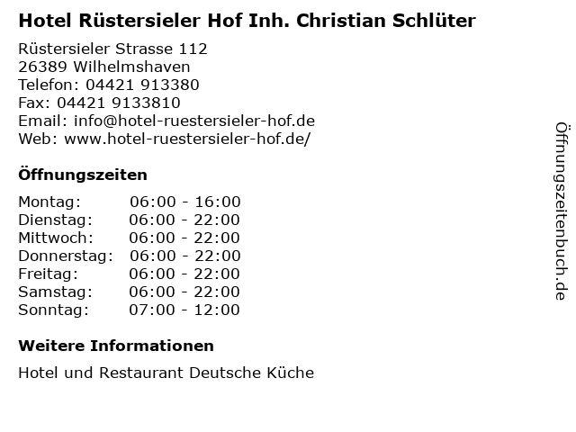 Branchen & Suchbegriffe zu Hotel Rüstersieler Hof Inh. Christian Schlüter:christian, hof, hotel, rüstersieler, schlüter |