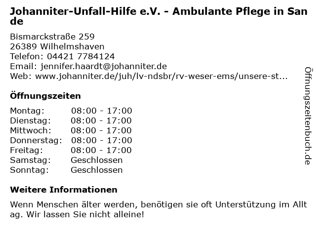 Branchen & Suchbegriffe zu Johanniter-Unfall-Hilfe e.V. - Ambulante Pflege in Sande:ambulante, e.v., gemeinnützige organisation, hilfe, hilfsorganisation, johanniter, pflege, sande, sozialarbeit, unfall, verband, wohlfahrtseinrichtung |