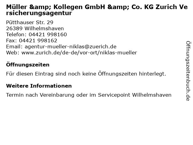 | Müller & Kollegen GmbH & Co. KG Zurich Versicherungsagentur anrufen | |