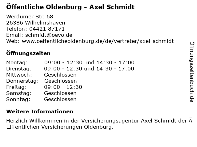 Branchen & Suchbegriffe zu Öffentliche Oldenburg - Axel Schmidt:axel, schmidt, öffentliche |