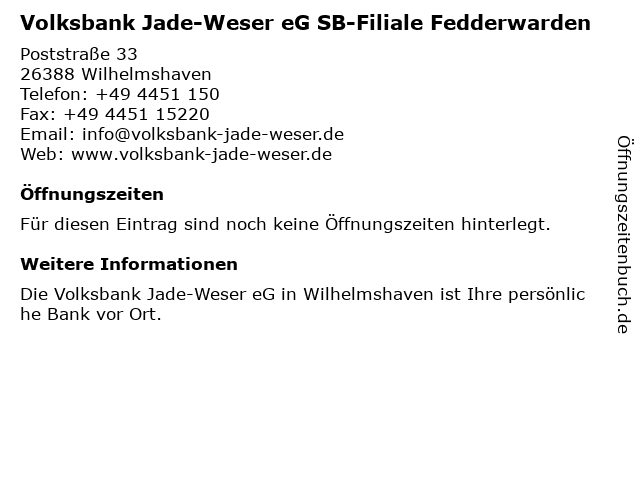 Volksbank Jade-Weser eG SB-Filiale Fedderwarden anrufen | |