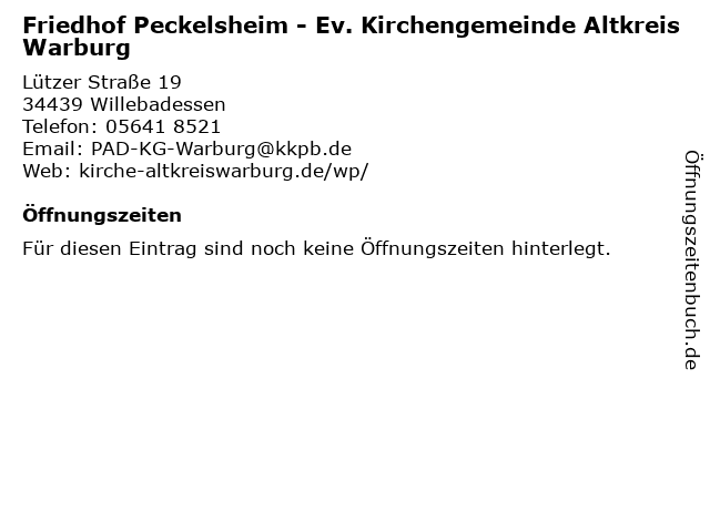 | Friedhof Peckelsheim - Ev. Kirchengemeinde Altkreis Warburg anrufen | |