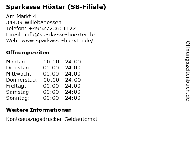 5 Sparkasse Paderborn-Detmold-Höxter (SB-Filiale) (Entfernung: 16,33 km) Dringenberger Straße 61, 33014 Bad Driburg 6 Braunschweigische Landessparkasse (SB-Standort) (Entfernung: 18,96 km) Hasenstraße 1, 37697 Lauenförde |