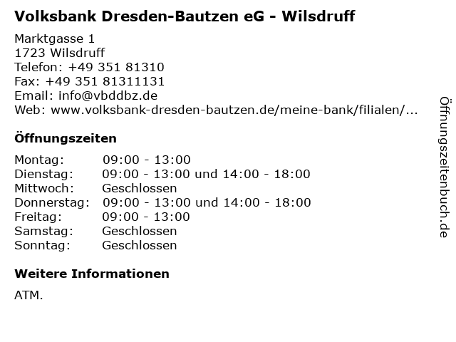 1 Volksbank Dresden-Bautzen eG - Cossebaude (SB-Filiale) (Entfernung: 8,06 km) Dresdner Straße 45, 01156 Dresden 4 Deutsche Apotheker- und Ärztebank eG - apoBank (Entfernung: 17,22 km) Mildred-Scheel-Straße 2, 01307 Dresden 6 |