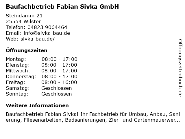 Branchen & Suchbegriffe zu Baufachbetrieb Fabian Sivka GmbH:baufachbetrieb, fabian, sivka |