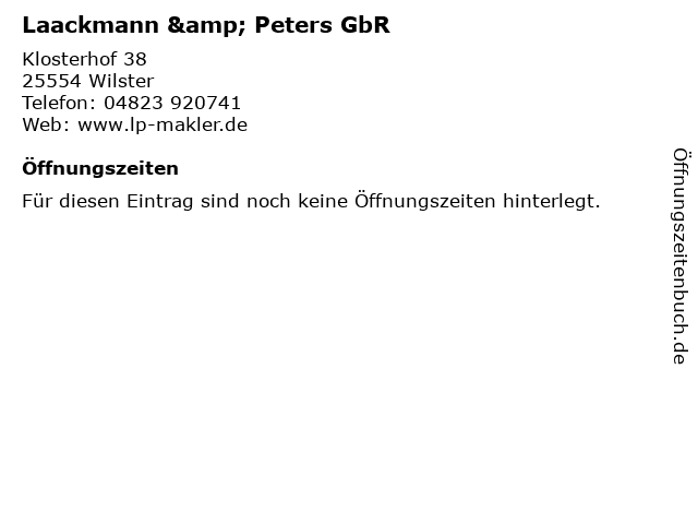 | Öffnungszeiten Laackmann & Peters GbR in Wilster anzeigen | |
