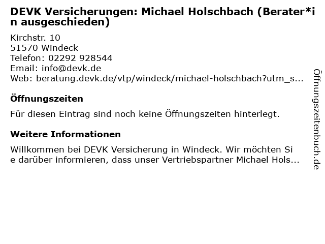 | DEVK Versicherungen: Michael Holschbach (Berater*in ausgeschieden) anrufen | |