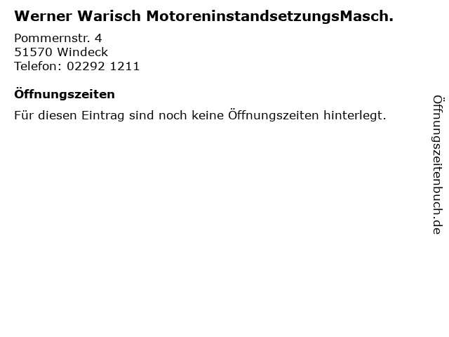 | Werner Warisch MotoreninstandsetzungsMasch. anrufen | |