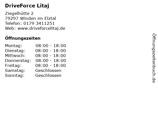 | Öffnungszeiten DriveForce Litaj in Winden im Elztal anzeigen | |