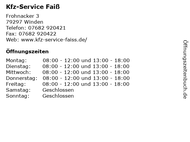 | Öffnungszeiten Kfz-Service Faiß in Winden anzeigen | |