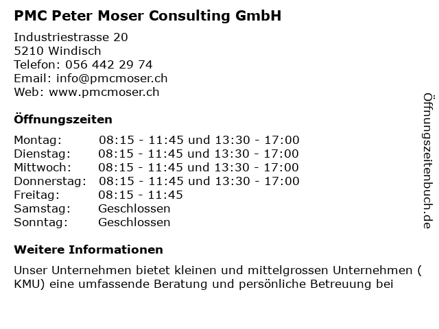 Branchen & Suchbegriffe zu PMC Peter Moser Consulting GmbH:buchhaltungsservice, consulting, moser, peter, pmc, treuhanddienste, unternehmensberatung, wirtschaftsprüfer |