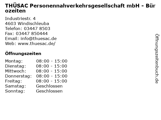 Branchen & Suchbegriffe zu THÜSAC Personennahverkehrsgesellschaft mbH - Bürozeiten:bürozeiten, hauptsitze, mbh, personennahverkehrsgesellschaft, personentransporte, sitz, thüsac, verkehrsbetriebe, windischleuba, zentrale, zentralen |