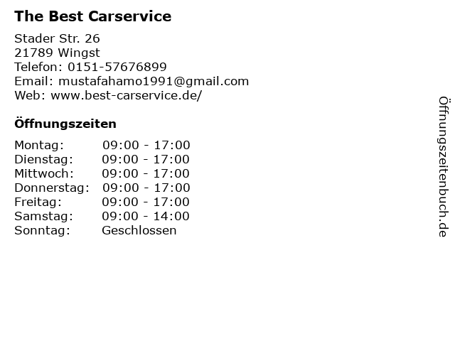 | Öffnungszeiten The Best Carservice in Wingst anzeigen | |