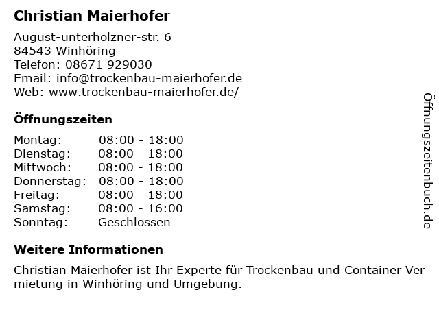 | Öffnungszeiten Christian Maierhofer in Winhöring anzeigen | |