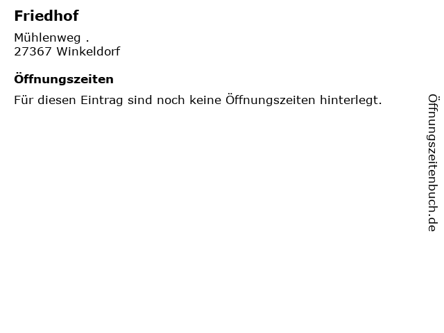 | Öffnungszeiten Friedhof in Winkeldorf anzeigen | |
