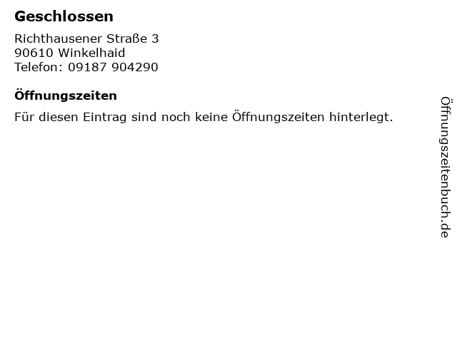 | Öffnungszeiten Geschlossen in Winkelhaid anzeigen | |